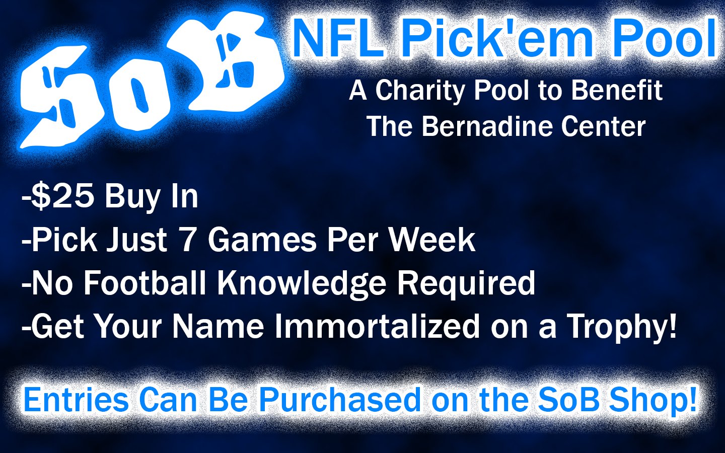For the first time ever the Sons of Ben are hosting an NFL Pick’em League in an effort to raise money for The Bernadine Center. All are welcome to sign up and participate. The more participants the more money raised for the Chester, PA based Food Bank.What is NFL Pick’ em League?An NFL Pick'em League is a type of fantasy football game where participants predict the winners of NFL games each week. Unlike traditional fantasy football, where you draft and manage players, Pick'em focuses solely on predicting game outcomes. Players score points for each correct pick, and the participant with the most points at the end of the season wins.