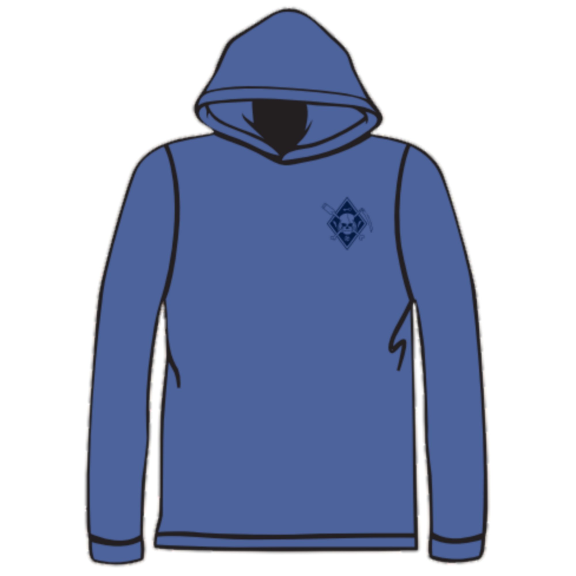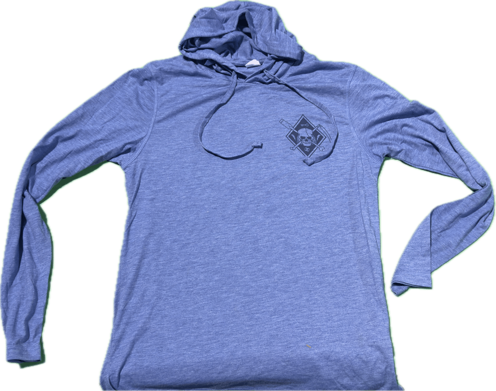 Lightweight and super comfy! These hoodies are great for lounging around! The hoodie is royal with a navy Jolly Franklin on the chest.